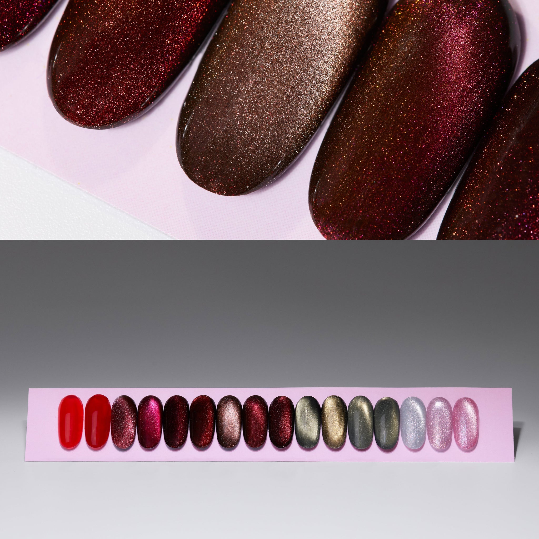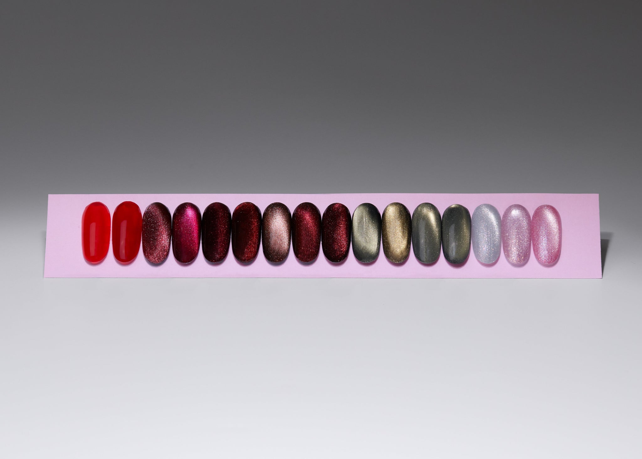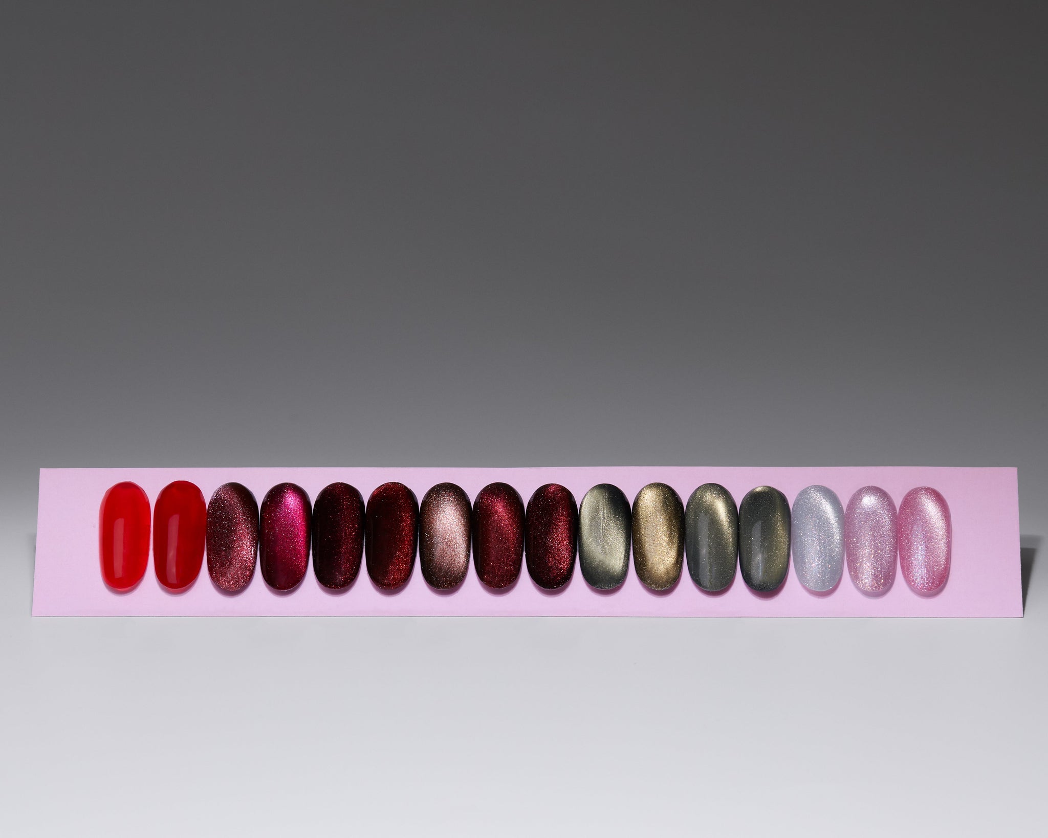 Deze exclusieve set bevat 14 schitterende Cat-Eye Gelpolish kleuren, zorgvuldig samengesteld van frisse, lichte tinten tot diepe, elegante dark shades. Perfect om je klanten te verrassen met een luxueus, magnetisch effect dat blijft fascineren.